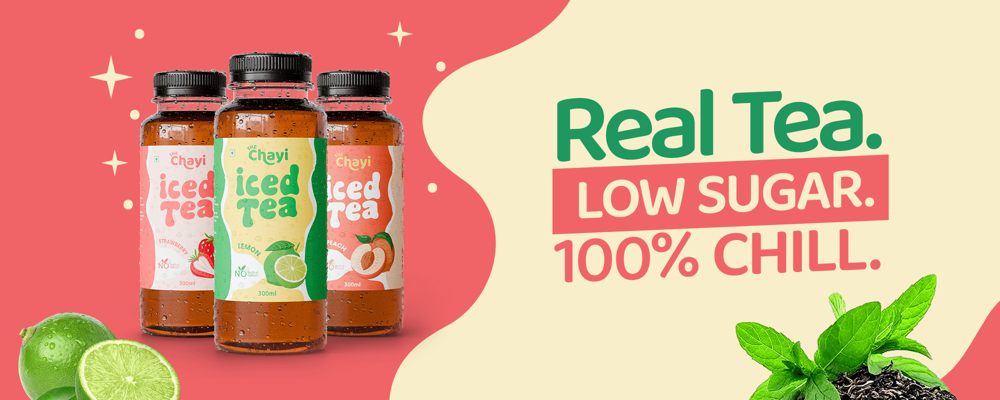 Nope! We sweeten our iced teas using desi khand or honey, and never use refined sugar. It’s clean, natural, and guilt-free.